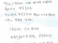 김*희님의 편지후기 치료해주신 조승목 원장님 간호사님 모두 감사합니다.2016년 10월 달에 수술 받고 일년 뒤 ..