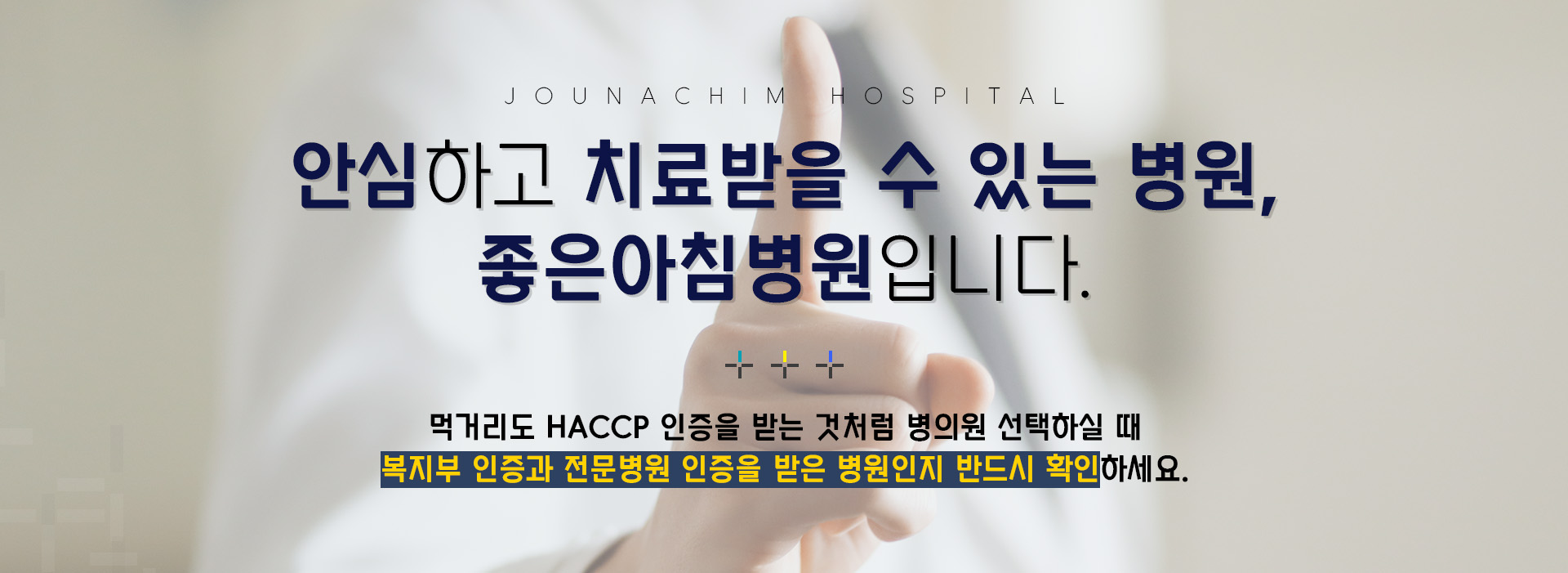 의료기관 인증제는 의료기관의 환자안전과 의료서비스의 질을 정부에서 인증하는 제도로 공인된의료기관으로서 앞으로 더욱 발전하는 좋은아침병원이 되도록 노력 하겠습니다.