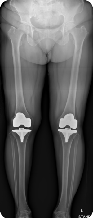 최종 수술방법으로서, 마모된 관절을 정상 무릎관절과 같은 형태의 정렬로 만들기 때문에 회복 후 운동 등이 가능해집니다.